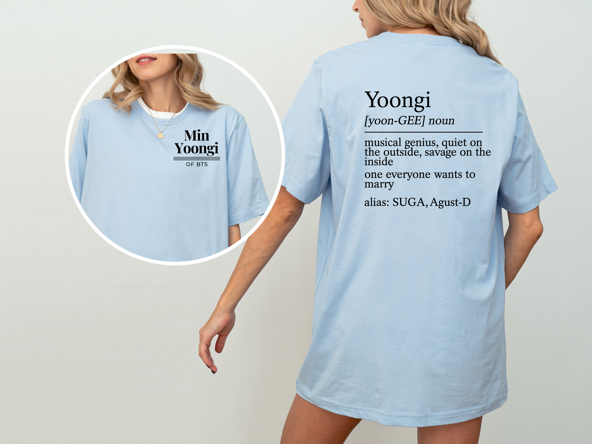 This tee is designed to honor Yoongi’s unique presence in BTS while giving fans a comfortable, everyday way to show their love. Whether you know him as Suga, Agust D, or Min Yoongi, this shirt is a must-have for your BTS collection.